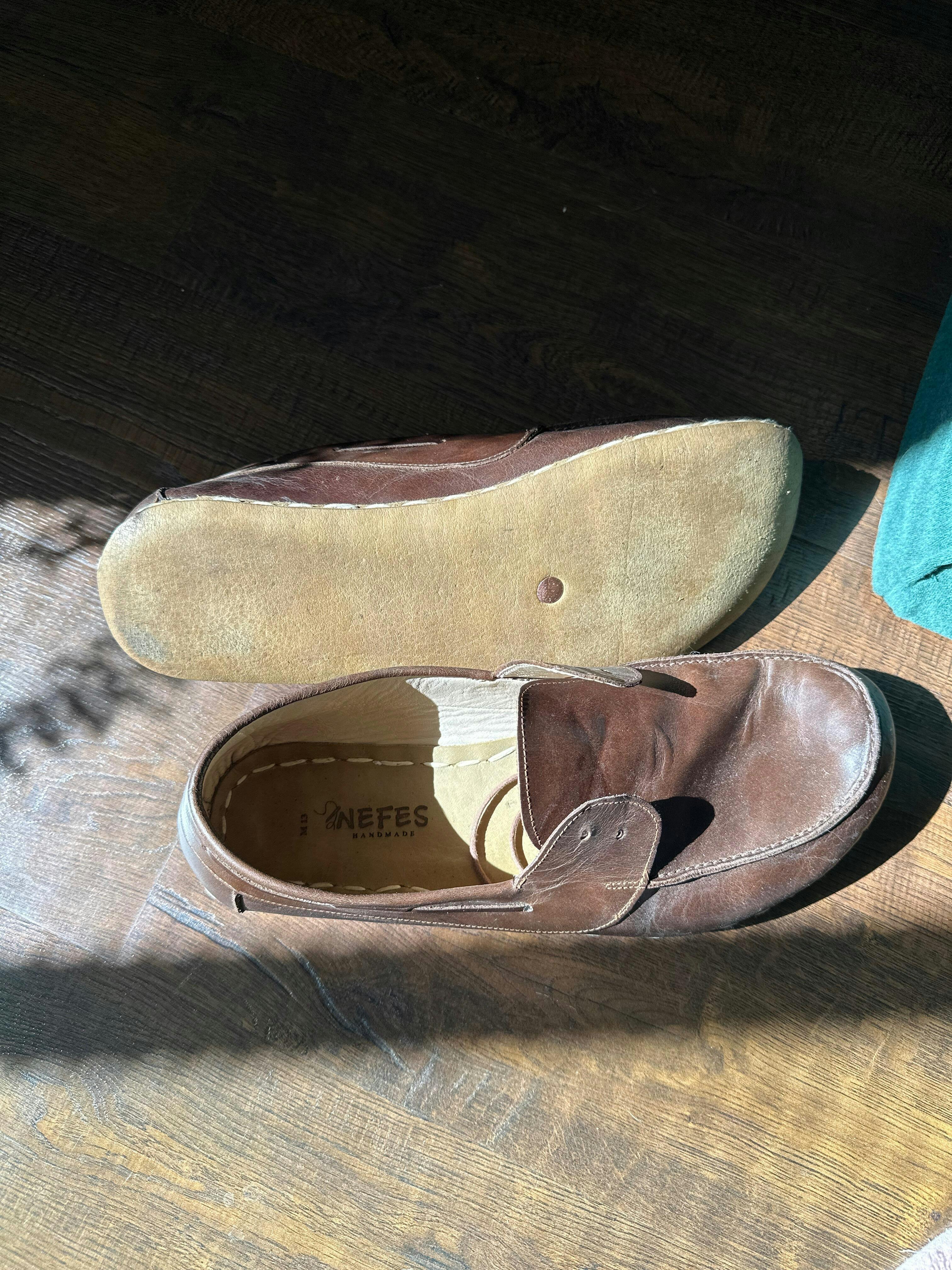 Our footwear is truly made by hand using natural materials, so the fitting should be snug at first, allowing them to break in and stretch over time. Please read our thoughtful notes describing our beautiful shoes to insure you get the perfect fit!