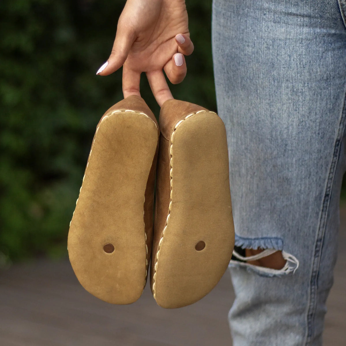 Buffalo leather-soled, handmade, zero-drop barefoot shoes. Sole thickness 5–8 mm, weight 250–400 g. No synthetic or vegan leather; made entirely from genuine natural leather. Lasts more than 2 years. Care: wipe with a damp cloth, do not machine wash, avoid excessive water exposure.