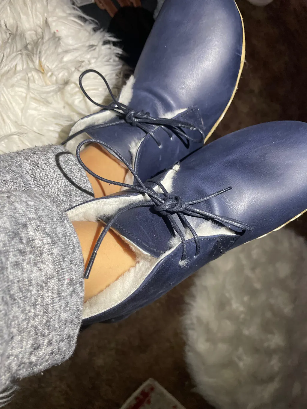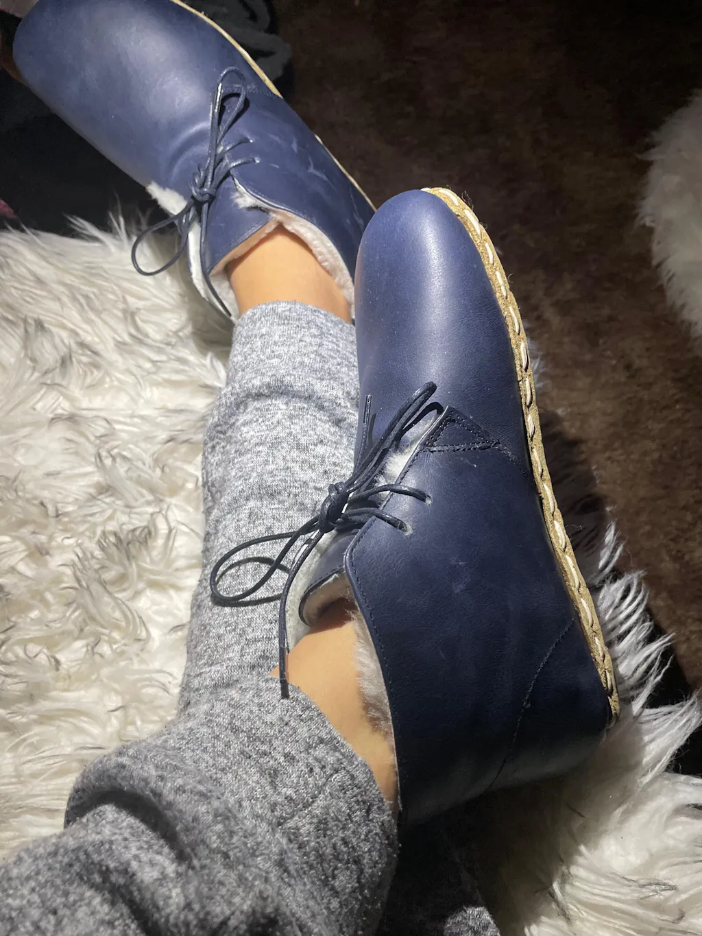 Handmade Navy Blue Barefoot Shearling Oxford Boots