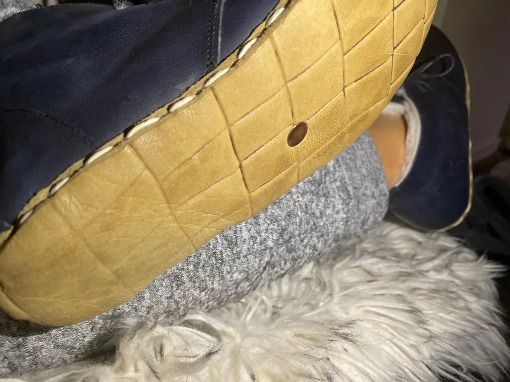 Embrace the fusion of tradition and modernity with our Handmade Navy Blue Barefoot Shearling Oxford Boots For Women. Handcrafted with precision, these boots exemplify timeless elegance and functionality. The plush toska lamb fur lining promises unparalleled warmth, making them an ideal choice for chilly days. The robust buffalo leather sole, complemented by a non-slip rubber layer, ensures durability and safety. While these boots radiate style and sophistication, their zero-drop design provides the grounding essence of barefoot shoes. Please note, while genuine leather offers durability and style, we advise against exposing these boots to excessive water.