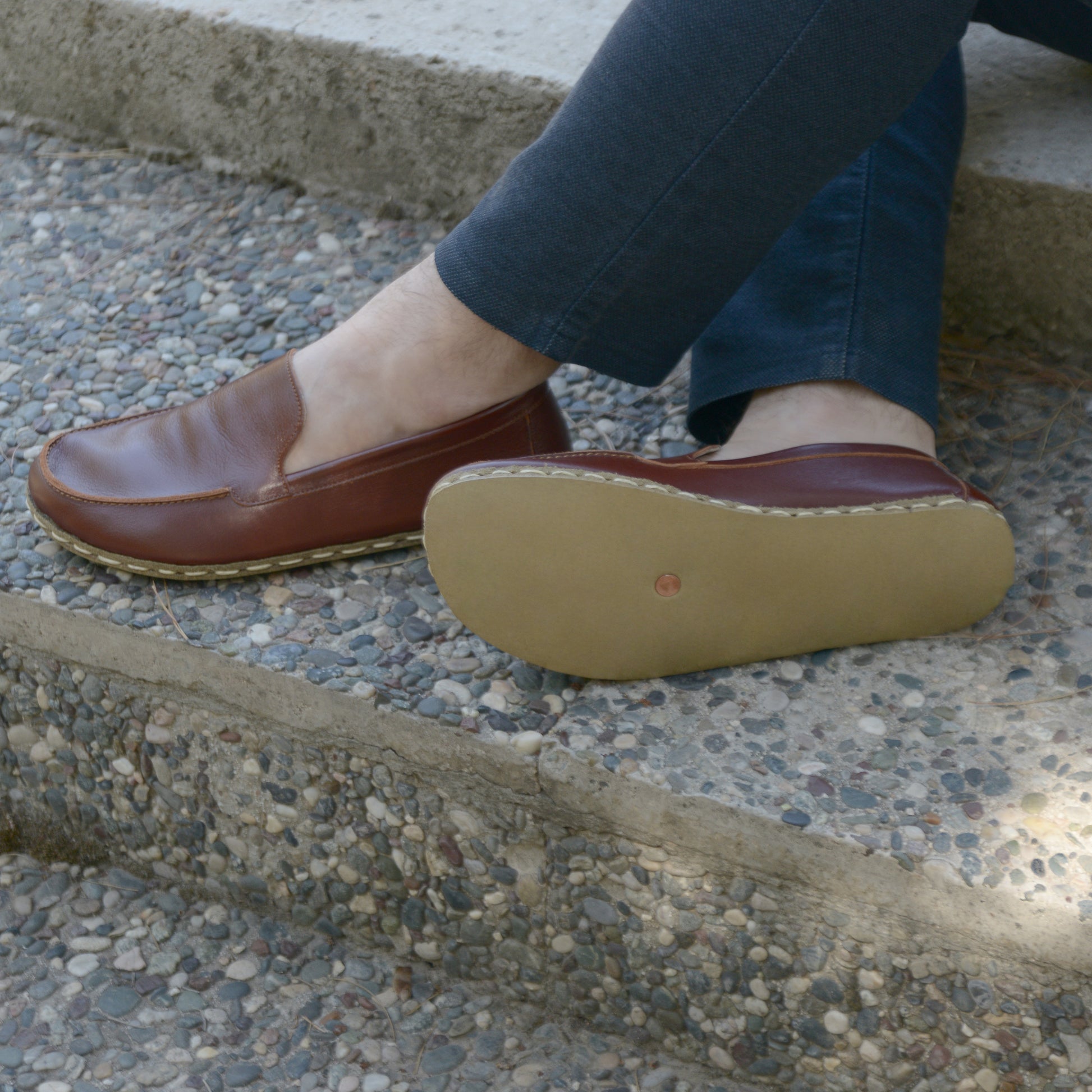 Our footwear is truly made by hand using natural materials, so the fitting should be snug at first, allowing them to break in and stretch over time. Please read our thoughtful notes describing our beautiful shoes to insure you get the perfect fit!