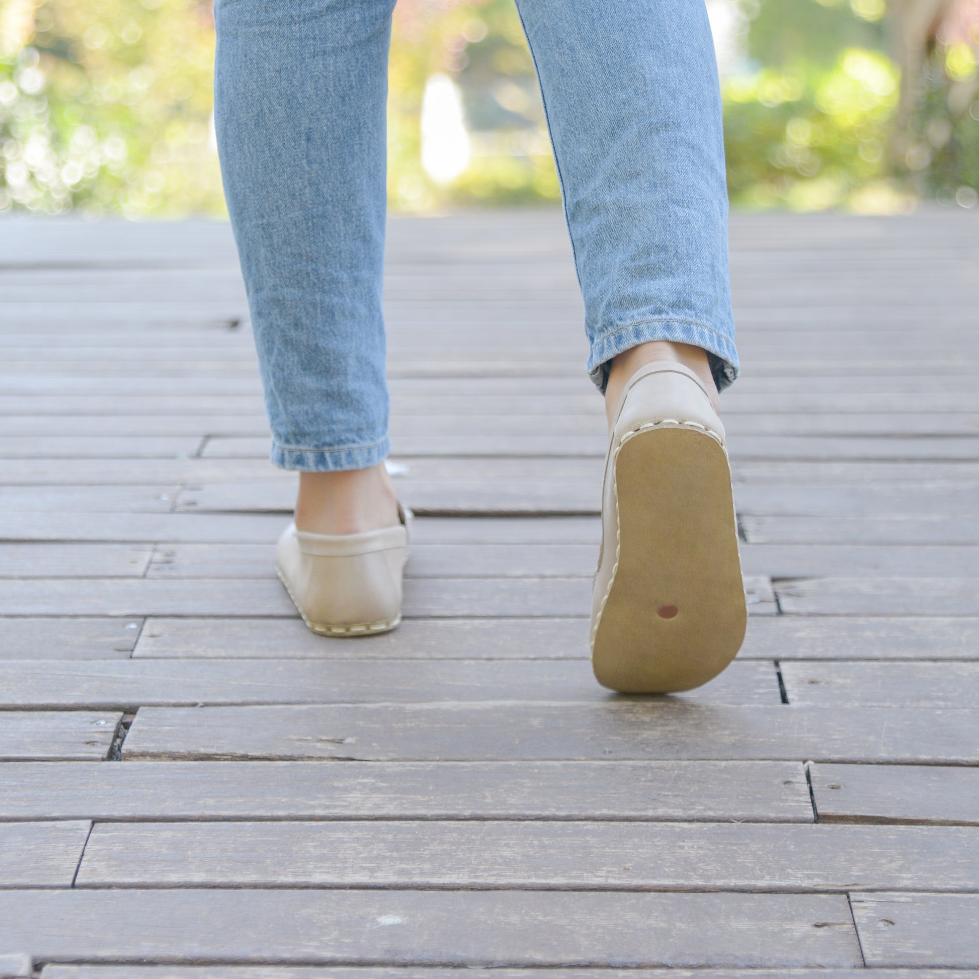 Our footwear is truly made by hand using natural materials, so the fitting should be snug at first, allowing them to break in and stretch over time. Please read our thoughtful notes describing our beautiful shoes to insure you get the perfect fit!
