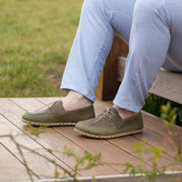 Military Green Men's Leather Earthing Barefoot Shoes - 5